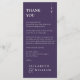 Una elegante tarjeta de agradecimiento de recepción de boda morada minimalista. Personalizada con su especial mensaje de agradecimiento en tipografía elegante. Un especial recuerdo de agradecimiento para sus invitados. Diseñado por Thisisnotme©