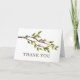 Caprichosa pero simple Tarjeta de agradecimiento de boda con ramas cepilladas con una ilustración de acuarela de hermosas ramas de árbol con hojas verdes vibrantes y exuberantes y un par de pájaros amarillos y azules. Esta elegante y moderna tarjeta de felicitación con aspecto de acuarela cepillada se puede personalizar fácilmente con los detalles de su boda. Para obtener más opciones de personalización, haga clic en el botón Personalizar.