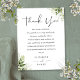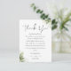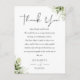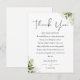 Una elegante tarjeta de agradecimiento de recepción de celebración de boda con vegetación floral. Personalizada con su especial mensaje de agradecimiento en tipografía elegante. Un especial recuerdo de agradecimiento para sus invitados. Diseñado por Thisisnotme©