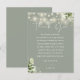Una tarjeta de agradecimiento de boda elegante con decoración floral verde salvia y luces de cuerda. Personalizada con su mensaje de agradecimiento en tipografía con estilo. Un recuerdo de agradecimiento único para sus invitados. Diseñada por Thisisnotme©