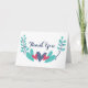 Tarjeta de agradecimiento de boda colorida y caprichosa Corazones y enredaderas con un borde de enredadera estilizado y adorable y un borde de corazón dulce en una bonita combinación de turquesa, azul y rojo. Este diseño moderno y de moda es fácil de personalizar con los detalles de su boda.