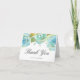 Flores de acuarela pintadas a mano en azul, turquesa, dorado y verde adornan la parte superior de esta elegante tarjeta de agradecimiento. Hermosas tarjetas para enviar notas de agradecimiento personalizadas después de su boda u otra ocasión especial.