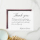 Una caligrafía clásica con letra serif destaca en esta tarjeta de agradecimiento de boda. La parte trasera de la tarjeta presenta un granito negro con vetas doradas y borde dorado. Esta es una tarjeta de agradecimiento sin foto.