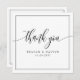 Expresa tu gratitud con esta elegante tarjeta de agradecimiento de boda de caligrafía en negro y blanco. El diseño minimalista presenta tipografía moderna y letra estilizada, perfecto para transmitir un mensaje de agradecimiento atemporal y sofisticado a tus seres queridos. Ideal para recién casados que buscan una forma clásica y elegante de mostrar aprecio.