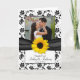 El texto y la foto de la boda en esta tarjeta de agradecimiento de boda floral de damasco negro y blanco con girasoles es totalmente personalizable. Puede cambiarlos utilizando la opción de personalizar. Para cambios más extensos en la tarjeta, incluyendo cambiar la fuente, el color de la fuente o la disposición de la fuente, elija la opción de personalizar. Esta es una excelente tarjeta de agradecimiento para una boda con un tema de girasoles. Elegante y sofisticada. Esta hermosa tarjeta está actualmente personalizada para una boda, pero también funcionaría muy bien para una despedida de soltera, un cumpleaños especial, aniversario o fiesta de jardín. Todo lo que necesita hacer es cambiar el texto y la foto. Algunos productos coincidentes que podrían gustarle: