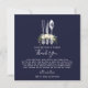 Una hermosa tarjeta de agradecimiento con diseño de cubiertos vintage con flores/greenery marfil y fondo azul marino y reverso. Fácil de editar o eliminar los campos de texto para adaptarlos a sus necesidades personales. ¡Perfecto para bodas en cualquier época del año! Están disponibles menú y tarjetas de asiento a juego, por favor visite mi tienda para comprar..