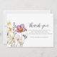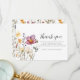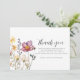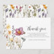 Tarjetas de agradecimiento de boda con flores silvestres de acuarela bonitas con su texto en la parte frontal y un patrón de flores silvestres en la parte posterior.
