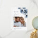 Flores transparentes azules en una foto personalizada con un texto de agradecimiento alineado a la izquierda.