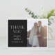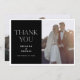 Esta es una tarjeta de agradecimiento de boda clásica y simple en blanco y negro que utiliza una fuente elegante y moderna junto con una foto minimalista única. El reverso incluye un mensaje que puedes personalizar, junto con otra foto.