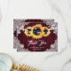 Agradezca a sus invitados por compartir en su día especial con estas elegantes y románticas tarjetas de agradecimiento de boda de girasol rústico de borgoña. Artículos coincidentes disponibles.