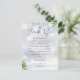 Una elegante tarjeta de recepción de agradecimiento de boda de invierno floral con vegetación. Personalizada con su especial mensaje de agradecimiento en tipografía elegante. Un especial recuerdo de agradecimiento para sus invitados. Diseñado por Thisisnotme