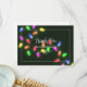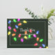 Tarjeta de agradecimiento de boda de Navidad con luces de Navidad brillantes y luminosas.