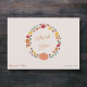Una carta de agradecimiento de otoño sobre el tema de la naturaleza y el bosque con una guirnalda y sus hojas de arce, haya, roble y avellana, setas, bellota, calabaza, castañas y nueces en colores otoñales y un mensaje personalizado en la espalda. Una manera sencilla de agradecer a sus seres queridos que te honran con su presencia en tu boda o en agradecimiento por los regalos que te ofrecen.
