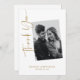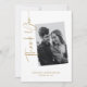 Expresa tu gratitud con estilo con esta tarjeta de agradecimiento de boda minimalista y elegante. Con un diseño de foto personalizada en blanco y negro y escritura en oro de lujo, esta tarjeta emana sofisticación moderna mientras mantiene el enfoque en tus queridos momentos de boda.
