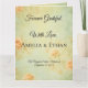 Expresa tu gratitud con estilo con esta elegante tarjeta de agradecimiento de boda plegada. Diseñada para complementar el conjunto completo de papelería de boda, esta tarjeta presenta una portada personalizable, un mensaje sincero en el interior y espacio para un toque personal como una foto o una nota manuscrita. Impresa profesionalmente en cartulina de alta calidad, ofrece sofisticación y sentimiento, convirtiendo tu aprecio en un recuerdo que tus seres queridos atesorarán.