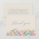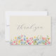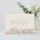 Expresa gratitud sincera con esta hermosa tarjeta de agradecimiento de boda de flores silvestres, que presenta flores acuarelas suaves en una paleta pastel de primavera. Con letra elegante y espacio para una nota personal, es el toque final perfecto para su suite de papelería de boda. Ideal para celebraciones rústicas, de jardín o boho.