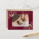 Expresa gratitud sincera con esta elegante tarjeta de agradecimiento de boda que presenta tonos ricos de borgoña, ilustraciones florales delicadas en dorado y espacio para tu foto favorita. Personalízala con tus nombres y mensaje para crear un cálido recuerdo que tus invitados apreciarán de verdad.
