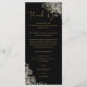 Una elegante tarjeta de agradecimiento de recepción de boda floral de rosas negras y doradas. Personalizada con su especial mensaje de agradecimiento en tipografía elegante. Un especial recuerdo de agradecimiento para sus invitados. Diseñado por Thisisnotme©