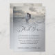 Una tarjeta de agradecimiento de boda elegante diseñada en un tono plateado suave, que combina un estilo minimalista con detalles refinados. La mitad superior destaca su foto de boda, mientras que la sección inferior presenta con gracia su mensaje de gratitud. El fondo plateado brillante se combina con caligrafía delicada y tipo serif limpio, creando un equilibrio atemporal de sofisticación y simplicidad. Una forma perfecta para que las parejas expresen un agradecimiento sincero con elegancia moderna.