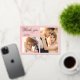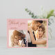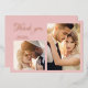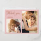 Invitación de boda moderna rosa de agradecimiento con 4 fotos. Tarjeta de agradecimiento de boda con lámina dorada. Tarjeta de agradecimiento con lámina dorada. Esta tarjeta de agradecimiento de boda con lámina dorada presenta letra de caligrafía con Personaliza con tus nombres y fecha de boda.
