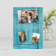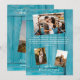 Este diseño presenta un fondo de madera rústica azul con una selección de fotos personales de la pareja. El fondo de madera azul rústica se complementa con el texto blanco y 3 fotos personales en un lado y otra foto personal en el otro lado. Los tonos azules de la madera crean un ambiente náutico rústico. Elegante diseño de tarjeta de agradecimiento de boda con elementos modernos. También están disponibles invitaciones de boda y otros artículos de papelería a juego.