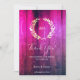 Expresa tu gratitud con esta hermosa tarjeta de agradecimiento de boda rústica. Con un cálido fondo de textura de madera en vibrantes tonos púrpura y rosa, combinado con una corona de laurel dorada y tipografía elegante, esta tarjeta es perfecta para bodas rústicas modernas o con temática boho.