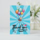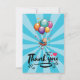 Dulce tarjeta de agradecimiento por una ducha de bebé, adornada con un globo azul, expresando sincera gratitud a los asistentes.