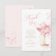 Muestra tu agradecimiento con esta elegante tarjeta de agradecimiento que presenta una copa de champán dorada y rosa con un lazo rosa y pétalos rosados. Una forma encantadora de decir gracias después de la celebración de tu hermosa despedida de soltera.