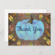 Tarjeta de agradecimiento de calabaza de otoño con acuarela rústica azul de otoño. Fondo de madera rústica. Granero retro vintage campestre. Fuente de letra script hermosa de amor y agradecimiento. Agregue su mensaje en el reverso o déjelo en blanco y escriba a mano. Para una personalización adicional, haga clic en el botón "Personalízalo" y use nuestra herramienta de diseño para modificar esta plantilla.