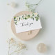 Tarjetas de agradecimiento de caligrafía de flores blancas y vegetación
