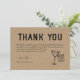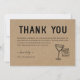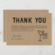 Tarjeta de agradecimiento de cócteles gratis divertida - Arte de un brindis con martini dibujado a mano y bebida mezclada sobre un fondo kraft rústico maravilloso. Un divertido agradecimiento por un evento divertido.