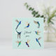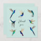 Esta tarjeta presenta varias especies de colibríes tropicales como el colibrí corona púrpura terciopelo, el jacobino de cuello blanco, el zafiro de cola dorada, el colibrí de garganta ígnea y el colibrí de cola de golondrina. Imágenes tomadas de pinturas originales de acuarela de Christiane Dobbins. El reverso queda en blanco para su propio mensaje manuscrito.