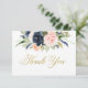 Tendencias de baby shower 2019, rosa naval son los colores del año, tarjeta de agradecimiento floral elegante