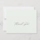 Esta elegante tarjeta de agradecimiento con coordenadas de vegetación es perfecta para una boda sencilla. El diseño minimalista en gris y verde menta presenta tipografía romántica elegante con estilo glam moderno. Personalizable en cualquier color. Mantenga el diseño minimalista y clásico, tal como está, o personalícelo agregando sus propios gráficos y arte. Personalice la parte trasera de la tarjeta con sus nombres y un mensaje de agradecimiento. Alternativamente, deje la sección de la plantilla del mensaje de agradecimiento en blanco para escribir a mano una nota personalizada en cada tarjeta después de que lleguen. Estas tarjetas se pueden utilizar para una boda, una ducha de novia o cualquier evento especial.