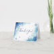 Hermosa tarjeta de nota de agradecimiento con copos de nieve en acuarela azul para baby shower o despedida de soltera.