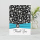 Esta tarjeta de agradecimiento de copos de nieve negra y blanca tiene una cinta azul acuática FALSA y un medallón de copo de nieve. Coincide con la invitación de boda que se muestra a continuación. También hay una tarjeta de agradecimiento de estilo de tarjeta de saludo pequeña que se muestra a continuación, si lo prefiere. Si necesita otros artículos coincidentes en este diseño, envíe su solicitud a niteowlstudio@gmail.com.