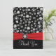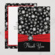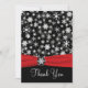 Esta festiva tarjeta de agradecimiento de copos de nieve en blanco y negro tiene una cinta roja FALSA y un medallón de copos de nieve. Coincide con la invitación de boda que se muestra a continuación. También hay una pequeña tarjeta de agradecimiento estilo tarjeta de felicitación que se muestra a continuación, si lo prefiere. Si necesita otros artículos coincidentes en este diseño, envíe su solicitud a niteowlstudio@gmail.com.