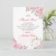 Tarjeta de agradecimiento de corona floral rosa quinceañera