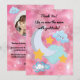 Perfecta para compartir su gratitud con familiares y amigos que ayudaron a hacer que la celebración sea cósmica y memorable, esta tarjeta agrega un toque personalizado y emotivo con la foto y el nombre de su pequeño astronauta.