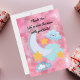 Esta adorable tarjeta de agradecimiento de cumpleaños "Dos a la Luna" presenta un tema soñador de espacio exterior con nubes pastel suaves, estrellas brillantes y una luna sonriente.