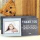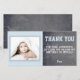 Tarjeta de agradecimiento de cumpleaños adorable para agradecer a sus invitados. Personalice la tarjeta con su foto y nombre. También puede cambiar el texto de agradecimiento y escribir el suyo. El texto es de color azul y blanco. El fondo es una textura de pizarra gris moderna y azul pastel.