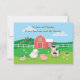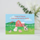 Tarjeta de agradecimiento de cumpleaños con tema de granja colorida y linda. Este diseño unisex presenta una escena apta para niños con un granero y personajes lindos, incluyendo una vaca, cordero, cerdo, gallina, gallo y pollitos.