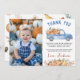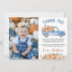Celebre el cumpleaños de su pequeño con una emotiva tarjeta de agradecimiento que presenta un encantador camión de calabaza y un juguetón follaje de otoño. Este adorable diseño es perfecto para expresar gratitud a amigos y familiares por hacer que el día sea aún más especial.