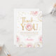 Tarjeta de agradecimiento de cumpleaños para fiesta de cumpleaños número uno con donas rosadas y blancas. Diseño lindo y moderno con donas rosadas y blancas de acuarela. Presenta fuente de escritura tipográfica uno. Puede elegir invitaciones impresas y/o plantilla digital para descargar instantáneamente. Perfecto para una celebración de cumpleaños femenino y elegante para niñas.