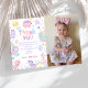Tarjeta de agradecimiento de cumpleaños con foto de T-Rex de dinosaurio rosa
