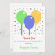 Una tarjeta de agradecimiento colorida con globos y lunares para agradecer a tus invitados por venir a una fiesta de cumpleaños. ¡Cambia el mensaje para usarlo en una fiesta de inauguración, un baby shower, una olla de jubilación o cualquier fiesta que organices!