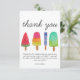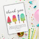 Di un dulce "gracias" de la manera más refrescante con esta tarjeta de agradecimiento de cumpleaños de paleta colorida. Con características de paletas de helado de acuarela vibrantes y un diseño juguetón de verano, esta tarjeta es el seguimiento perfecto para una alegre fiesta en la piscina o una fiesta de cumpleaños en clima cálido.