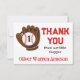 Tarjeta de agradecimiento de un chico divertido: Primer cumpleaños. Guante marrón con un béisbol rojo y blanco (agregue la edad de su hijo dentro de la bola). Tipografía deportiva atlética. Ideal para Boy Baby Shower, primer cumpleaños de Boy.