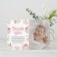 Envía una nota sentida con esta adorable tarjeta de agradecimiento por cumpleaños de calabaza fotográfica. Con toallas de agua de color, flores suaves y espacio para la foto de su bebé, este diseño es perfecto para una pequeña calabaza de primer cumpleaños o celebración de otoño. Personalice con el nombre, la imagen y el mensaje de su hijo para crear un conservador único para amigos y familiares.