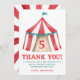 Agradezca a los invitados por venir a celebrar el cumpleaños del niño o niña con nuestras elegantes tarjetas de agradecimiento de cumpleaños de carpa de circo vintage. Las adorables tarjetas de agradecimiento con tema de circo presentan una colorida carpa de circo de acuarela con tipografía vintage roja. Personalice las tarjetas de agradecimiento agregando el nombre de su hijo, edad y mensaje de agradecimiento personalizado.